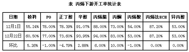 較月初相比,多數(shù)工廠的開工負荷都是有一定提高的,尤其是粉料工廠,開工負荷提高了5.26%,這對于丙烯市場利好影響是比較大的。而環(huán)氧丙烷及丙烯酸雖然有小幅下跌,但是開工負荷仍處于高位,且環(huán)丙的利潤狀況較好,工廠對丙烯的采購需求也相對旺盛,支撐市場。
