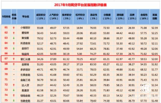 近日,網(wǎng)貸之家《2017年9月網(wǎng)貸平臺(tái)發(fā)展指數(shù)評(píng)級(jí)》發(fā)布,評(píng)級(jí)報(bào)告顯示,普匯云通連續(xù)兩個(gè)月登榜,位列全國(guó)網(wǎng)貸平臺(tái)綜合排名第67名,較8月排名上升11名,環(huán)比上升15%,憑借穩(wěn)健發(fā)展和合規(guī)透明的優(yōu)勢(shì),普匯云通受到權(quán)威機(jī)構(gòu)及行業(yè)的高度認(rèn)可。