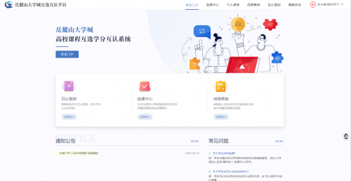 學(xué)生登錄岳麓山大學(xué)城互選互認(rèn)平臺(tái)網(wǎng)址,進(jìn)入門戶首頁(yè),可查看選課通知公告。