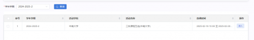 點(diǎn)擊選課中心“立即進(jìn)入”,再點(diǎn)擊頁(yè)面右邊操作欄“進(jìn)入”,可看到待選課程列表展示外校開放的課程具體信息。