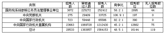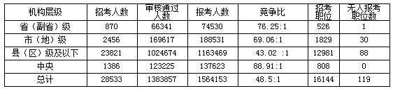 中央黨群百里挑一,中央國(guó)家行政機(jī)關(guān)直屬機(jī)構(gòu)低于平均競(jìng)爭(zhēng)比