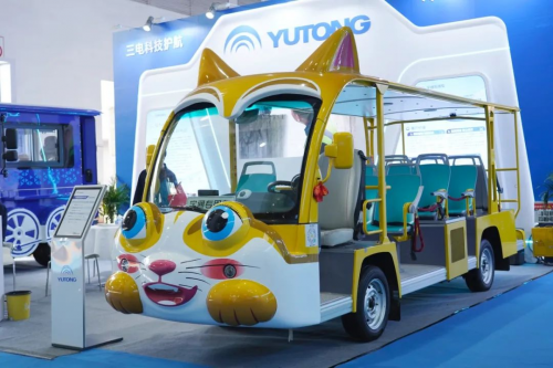 而一旁的“小橘貓”等特殊造型觀光車更是成為拍照打卡熱點(diǎn)。一位來自海南的景區(qū)負(fù)責(zé)人贊嘆:“宇通的定制化設(shè)計(jì)能力太強(qiáng)了!這些車本身就是‘景點(diǎn)’,能直接提升游客的消費(fèi)意愿?!?/p>