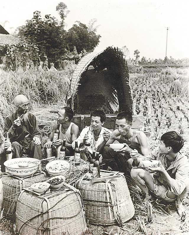 1983年,農(nóng)民勞作間隙在田間吃飯、休息。(資料圖片)