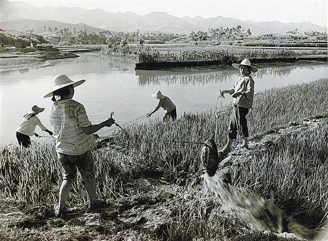 上世紀(jì)80年代改革開放初期,長壽縣葛蘭區(qū)農(nóng)村農(nóng)民頂著烈日,用各種工具引水抗旱。(資料圖片)