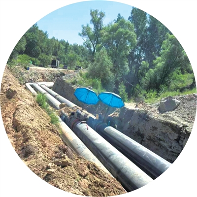 匯能控股集團蒙南電廠鋪設供熱管道施工現(xiàn)場。