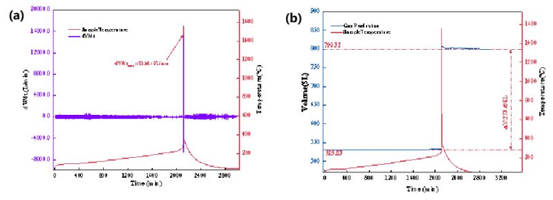 圖3 三元九系電池?zé)崾Э?a)產(chǎn)氣速率曲線及(b)產(chǎn)氣量曲線