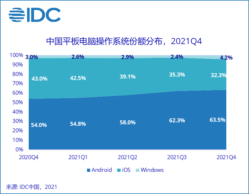 根據(jù)最新國際數(shù)據(jù)公司(IDC)平板電腦季度跟蹤報告,2021年第四季度,中國平板電腦市場出貨量約742萬臺,同比增長20.9%。2021年全年中國平板電腦市場出貨量約2846萬臺,同比增長21.8%,創(chuàng)近7年出貨最高增幅。