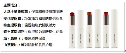 當市面上充斥著琳瑯滿目、參差不齊的口紅產(chǎn)品時,paparecipe依舊秉持匠心,打造了一系列天然派的產(chǎn)品,paparecipe春雨融彩口紅采用獨家天然護唇配方,蘊含的大馬士革玫瑰花、櫻花提取物、蜂蜜提取物、蜂王漿提取物、山茶花油等成分,在唇部形成滋養(yǎng)保護膜,特別增加了山茶花精油陳鋒,更加良好的保濕度,給唇部時刻保持水潤,透亮更迷人。當具有不同功效的成分組合到一起時,持久滋潤、上色度均勻、彰顯女性魅力的paparecipe春雨融彩晶亮口紅與paparecipe春雨融彩絲絨口紅就被自然打造了。霜狀質(zhì)地,涂抹于雙唇后輕柔融化,水潤包裹雙唇,宛若輕盈舒適若無妝。
