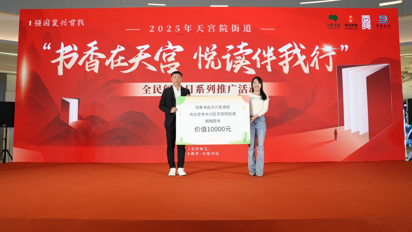 此次啟動(dòng)儀式現(xiàn)場(chǎng),句象書(shū)店還向天宮院街道及社區(qū)捐贈(zèng)了價(jià)值一萬(wàn)元圖書(shū)。新時(shí)代下,全民閱讀不僅是一種習(xí)慣,更是一種力量。儀式尾聲,天宮院街道轄區(qū)居民、學(xué)校師生和新就業(yè)群體代表,共同宣讀《“書(shū)香在天宮 悅讀伴我行”2025年全民閱讀日系列推廣活動(dòng)啟動(dòng)倡議書(shū)》。
