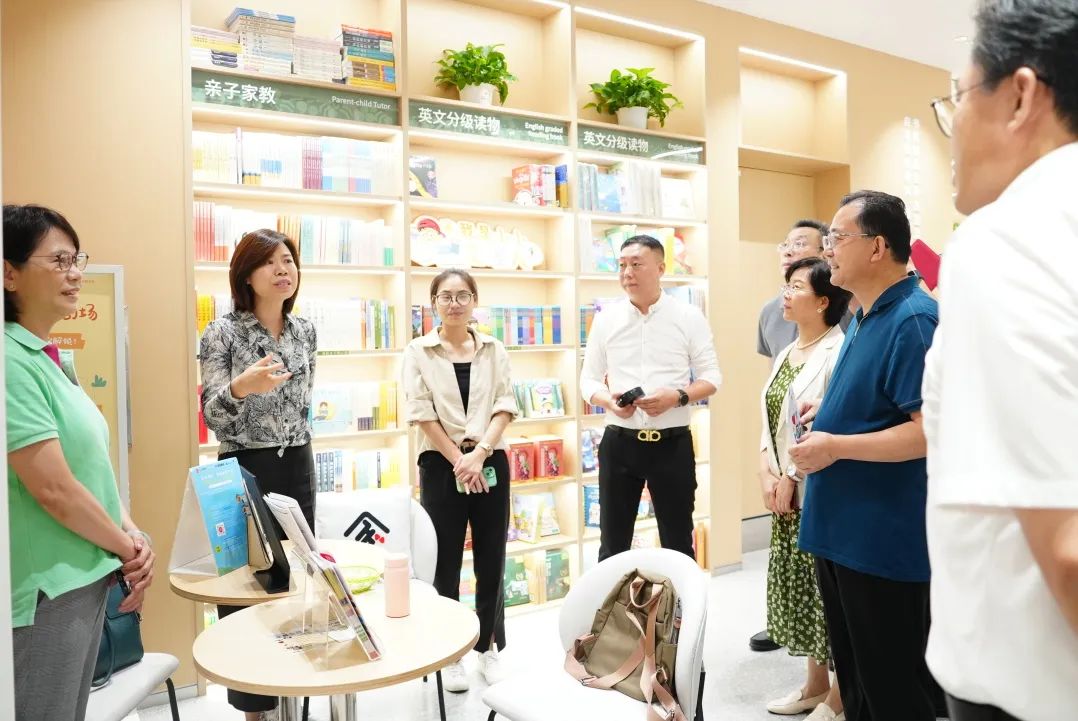 考察過程中,句象書店主要業(yè)務(wù)負(fù)責(zé)人引導(dǎo)調(diào)研組一行實地參觀了書店的多元功能空間。從精心設(shè)計的主題書架、親子閱讀區(qū),到融合了自習(xí)、研討、小型沙龍功能的共享空間,再到定期舉辦家長課堂、教育講座、親子活動的句象劇場,書店負(fù)責(zé)人詳細(xì)介紹了句象書店“連接家庭、學(xué)校與社區(qū)”的經(jīng)營理念和豐富實踐,并向調(diào)研組系統(tǒng)匯報了書店在推動家校社協(xié)同育人方面的具體舉措。姬兆亮及委員們不時就句象書店的空間利用率、活動組織頻率、參與人群特征、與周邊學(xué)校及社區(qū)聯(lián)動情況等細(xì)節(jié)進(jìn)行詢問,對書店營造出的濃厚學(xué)習(xí)氛圍和溫馨的文化氣息表示贊賞。