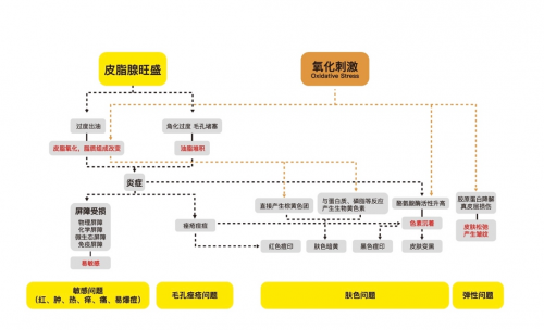 從破譯因出油引發(fā)的皮膚問題上,它詳解了“油敏肌‘元兇’:出油與炎癥”、“油痘問題的產(chǎn)生機(jī)制和護(hù)理策略”、“解碼油皮色澤:油光、暗沉、痘印的演變路徑”、“科學(xué)解析油皮的彈性變化,油皮的毛孔問題護(hù)理原則”等信息。