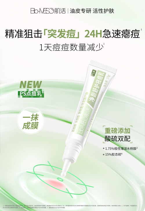 洞察到消費(fèi)者的需求痛點(diǎn),隨著對(duì)油皮專研的深入,Bio-MESO肌活打造出“3.0油敏痘專屬公式”,這一完全體解法,將“油敏痘”臉即刻格式化,挑戰(zhàn)一套逆襲嫩亮肌。