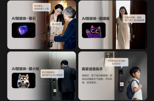 如果說水墨屏把手重構(gòu)了智能鎖的“視覺情感”,那么Y5000FVX Ultra搭載的 7 種 AI 智能體,則賦予產(chǎn)品“交互情感”的生命力。螢石深知智能設(shè)備的溫度不僅源于外觀,更來自于與用戶的深度對話,因此為用戶打造了覆蓋多元風(fēng)格的智能體矩陣。