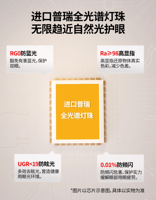 UGR<19防眩光:通過科學(xué)的布光設(shè)計(jì)和燈罩材質(zhì),有效抑制了令人不適的眩光。無論是孩子抬頭瞬間,還是在客廳走動(dòng),都避免了強(qiáng)光直射眼睛的刺眼感,營(yíng)造出柔和的光環(huán)境。