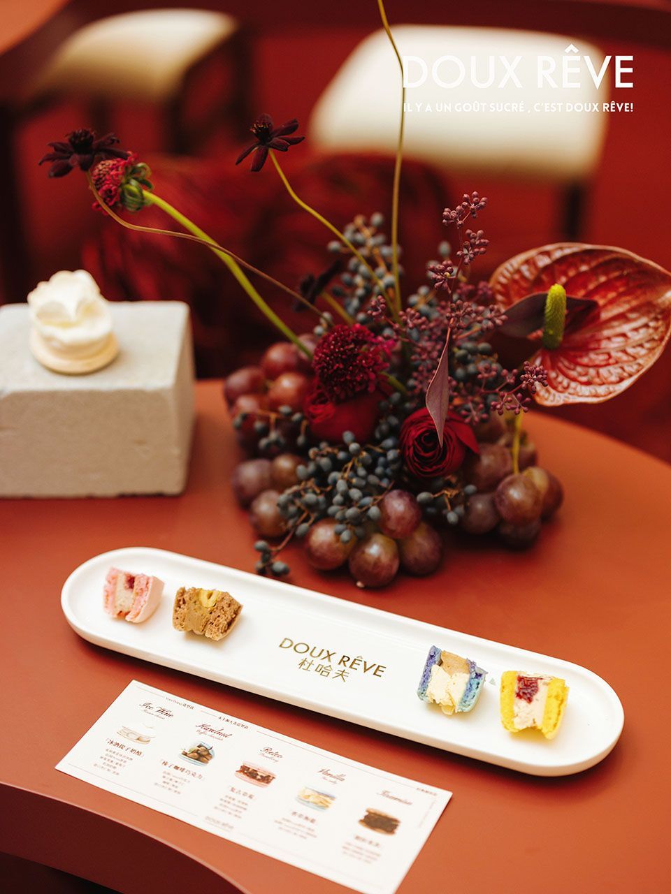 為期一周的活動中,杜哈夫不僅發(fā)布了5款藝術(shù)級馬卡龍新品,更與其 “ 品牌摯友 ”——VERA WANG、國瓷永豐源、張裕、法國 PROVA以及法國賽夢CéMOI,共同完成了一場跨越國界與領(lǐng)域的感官對話。