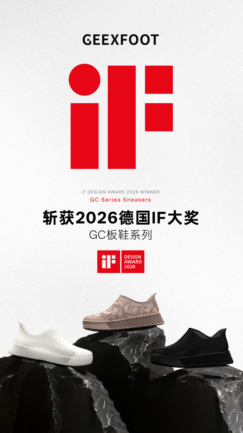 2026年,3D打印鞋履品牌GEEXFOOT己風(fēng)憑借GC系列板鞋榮獲德國(guó)iF Design Award。作為全球設(shè)計(jì)領(lǐng)域的重要獎(jiǎng)項(xiàng) ,這一成就不僅彰顯了品牌在鞋履設(shè)計(jì)領(lǐng)域的創(chuàng)新力 ,也體現(xiàn)了其在技術(shù)和功能整合上的領(lǐng)先地位。