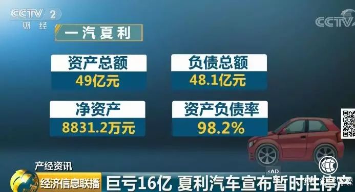 一汽夏利資產(chǎn)總額為49億元,同時(shí)負(fù)債總額為48.1億元,凈資產(chǎn)僅有8831.2萬(wàn)元,資產(chǎn)負(fù)債率高達(dá)98.2%。連續(xù)虧損,幾近資不抵債的夏利,目前已宣布暫時(shí)性停產(chǎn)。這意味著,這個(gè)曾經(jīng)在汽車(chē)行業(yè)呼風(fēng)喚雨,風(fēng)靡全國(guó),連續(xù)18年占據(jù)銷(xiāo)量冠軍寶座的老品牌,正在逐漸退出市場(chǎng)。