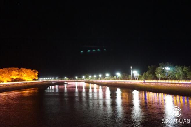 中國交建京新高速臨白三標(biāo)段的建設(shè)者為改善額濟(jì)納旗城鄉(xiāng)和農(nóng)牧區(qū)的道路交通條件做出了積極貢獻(xiàn),促進(jìn)了基礎(chǔ)設(shè)施建設(shè)發(fā)展。圖為額濟(jì)納旗胡楊景觀帶夜景。 (攝影 褚多鋒)