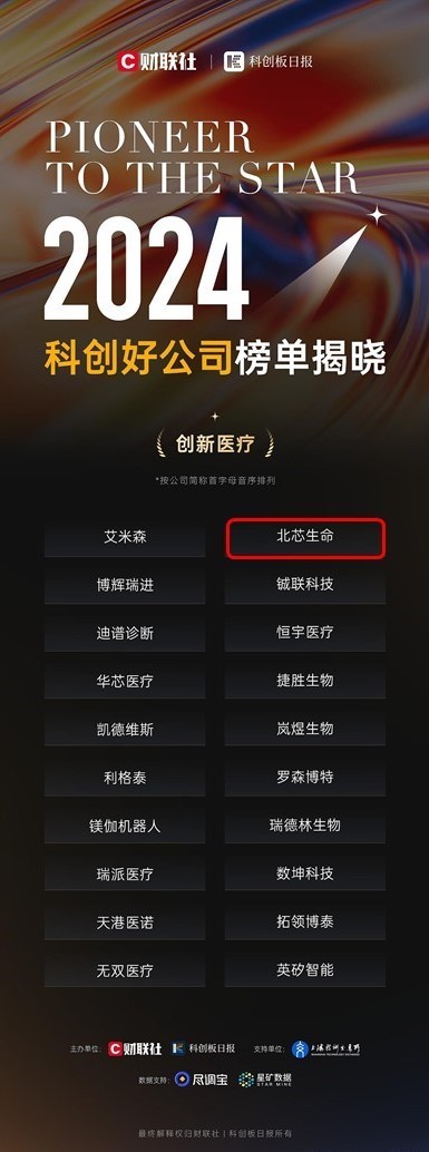 近日,由財聯(lián)社、《科創(chuàng)板日報》發(fā)起的2024科創(chuàng)好公司評選結(jié)果正式揭曉。深圳北芯生命科技股份有限公司(以下簡稱“北芯生命”)入選創(chuàng)新醫(yī)療領(lǐng)域2024科創(chuàng)好公司榜單!