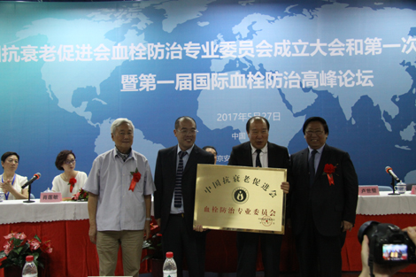 為提高我國(guó)血栓治療水平,進(jìn)一步促進(jìn)我國(guó)血栓治療與預(yù)防事業(yè)的發(fā)展,應(yīng)對(duì)國(guó)內(nèi)越來(lái)越嚴(yán)峻的血栓發(fā)病形勢(shì),5月26至28日中國(guó)抗衰老促進(jìn)會(huì)血栓防治專業(yè)委員會(huì)在北京召開(kāi)成立大會(huì)暨第一屆國(guó)際血栓防治論壇,旨在促進(jìn)血栓防治的理論研究,構(gòu)建學(xué)術(shù)交流、搭建成果推廣平臺(tái),以加強(qiáng)國(guó)內(nèi)外血栓研究機(jī)構(gòu)和學(xué)術(shù)團(tuán)體間的橫向聯(lián)系與協(xié)作,開(kāi)展多渠道,多種形式血栓防治知識(shí)普及,以促進(jìn)我國(guó)血栓防治事業(yè)發(fā)展。國(guó)家衛(wèi)計(jì)委領(lǐng)導(dǎo)、專家學(xué)者等蒞臨出席,并就血栓醫(yī)療領(lǐng)域的發(fā)展及科技進(jìn)步,共謀良策,共商大計(jì)。