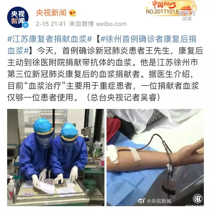 2月4日下午,武漢市江夏區(qū)中醫(yī)醫(yī)院院長(zhǎng)熊侃在微信群里發(fā)起捐獻(xiàn)倡議:新冠肺炎治愈患者的血漿可能含有抗體,輸入重癥患者血液中能挽救他們的生命。