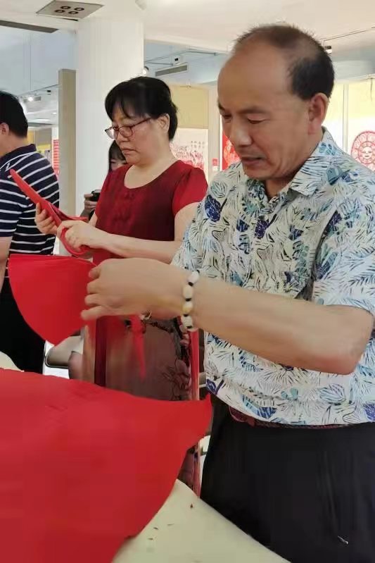 展覽現(xiàn)場,書畫家及剪紙藝術(shù)家們紛紛揮毫潑墨、即興創(chuàng)作、藝術(shù)交流,為慶祝黨的百年華誕獻(xiàn)禮。一幅幅飽含深情、貼近時代、貼近生活、追求真善美的作品躍然紙上,贏得在場觀眾的陣陣贊嘆。