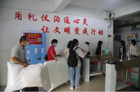 上午8點(diǎn)開始,校門前開始熱鬧起來,學(xué)生和家長(zhǎng)陸續(xù)來到學(xué)校報(bào)到。工作人員認(rèn)真做好入校檢測(cè)和秩序維護(hù),新生有序入校;校園內(nèi)專門設(shè)置志愿服務(wù)點(diǎn),幫助搬運(yùn)行李、指引報(bào)到流程;為了方便駕車的學(xué)生家長(zhǎng)入校,學(xué)校科學(xué)設(shè)計(jì)單向車道,家長(zhǎng)車輛直接將學(xué)生送至辦公樓前廣場(chǎng)的報(bào)到點(diǎn)后迅速離校;學(xué)校還安排了從辦公樓至學(xué)生公寓的擺渡車,全天往返為學(xué)生提供服務(wù)。