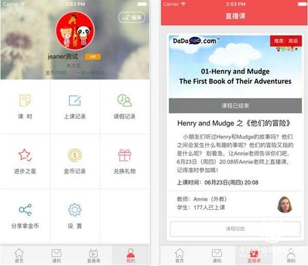 早在以PC端為主的階段,噠噠英語就實現(xiàn)了“100%透明教室”系統(tǒng)的運用,該系統(tǒng)旨在讓家長通過移動設(shè)備實時觀看孩子的在線課堂狀況,從而對孩子及老師的表現(xiàn)有直觀體驗。作為主打功能,該系統(tǒng)也一直在APP上得以保持。