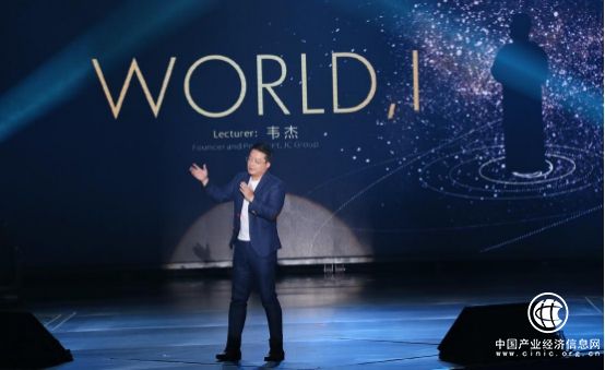 韋杰從舞臺右側樓梯快步走到舞臺中央和大家打招呼,迎面而來活力的氣息。果不其然,他說到了數(shù)字經濟,涉及大數(shù)據、智能化的發(fā)展,介紹了地球語言。