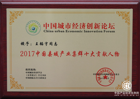 12月18日,由中國城市經(jīng)濟學會主辦的“中國城市經(jīng)濟創(chuàng)新論壇”在北京全國人大會議中心隆重舉行。在此次評選中,組委會基于國建集團總裁王韜宇對地方經(jīng)濟發(fā)展所做的突出貢獻,授予2017中國縣域產(chǎn)業(yè)集群十大貢獻人物殊榮,國建集團斬獲2017中國城市產(chǎn)業(yè)集群十大領軍企業(yè)大獎。