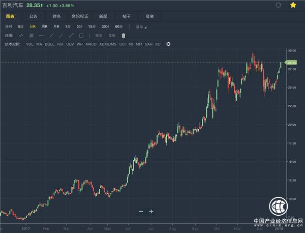 2016年吉利汽車業(yè)績爆發(fā)性增長,收入同比增長78%,基本每股收益增長126%,強(qiáng)勁的業(yè)績也驅(qū)動(dòng)了股價(jià)的上升。