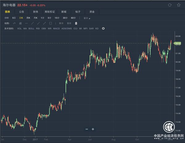 2017全年漲幅海爾電器主要研發(fā)、生產(chǎn)以及銷售“海爾”品牌的洗衣機(jī)和熱水器等電器。成立于1984年,產(chǎn)品銷售全球超過100個(gè)國家,曾被評(píng)為中國最受尊敬的品牌。