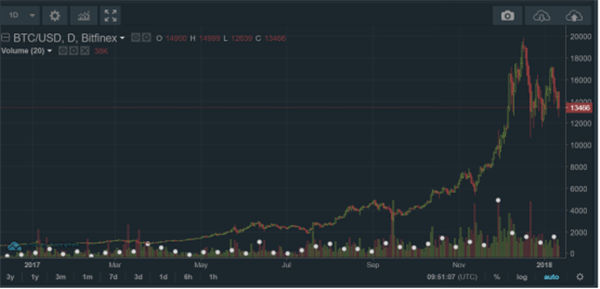 2017年,比特幣價(jià)格大漲大落,驚心動(dòng)魄中,有人缽滿盆滿低調(diào)離場(chǎng),也有人滿懷希冀高位入場(chǎng)。每當(dāng)突破新的價(jià)格高點(diǎn)時(shí),市場(chǎng)情緒都會(huì)被撩撥一下,接近年底時(shí),比特幣價(jià)格高達(dá)20000美元,但隨后比特幣價(jià)格又一路下跌至13000美元以下。