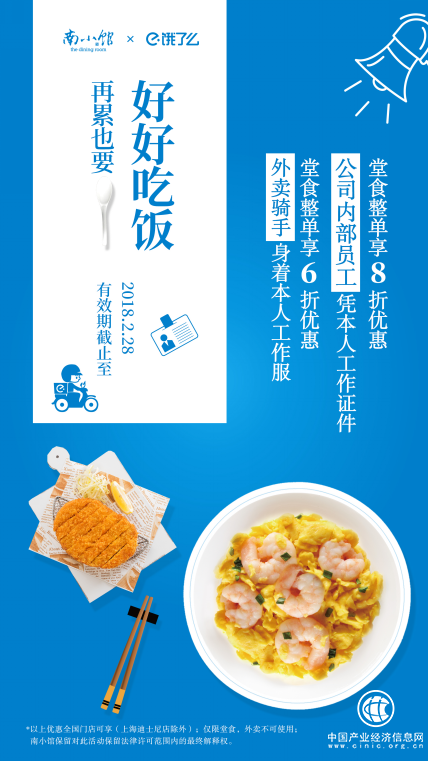 2018年1月起,為了感謝餓了么騎手對全國門店的辛勤付出,南小館全國門店面向餓了么的配送人員推出了一項“暖冬行動”:外賣騎手到店消費即享原價6折優(yōu)惠。該活動將一直持續(xù)到年后,以品牌的綿薄之力讓懂得努力的人獲得應(yīng)有的回報。