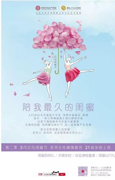 你好,歲月!你好,我的閨蜜!3月,濟(jì)南艾瑪婦產(chǎn)醫(yī)院第二季“艾瑪閨蜜節(jié)”系列女性健康服務(wù)泉城親密上線,女性健康體檢/備孕檢查/全面產(chǎn)檢/舒適分娩/菲蜜麗私密維養(yǎng),滿(mǎn)滿(mǎn)優(yōu)惠暖心來(lái)臨。