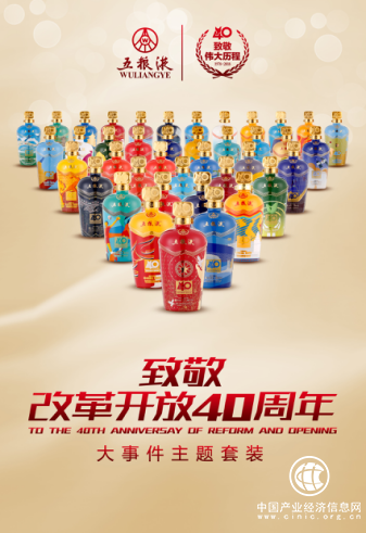 2018年,是中國改革開放40周年。3月18日,五糧液以酒為媒,用陳釀回望偉大歷程,用美酒展望新時代的宏偉藍圖,推出“改革開放40周年”紀念酒和“新時代國運昌”紀念酒。