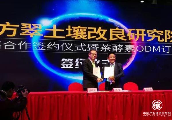 東方翠董事長林錐與上海喜恬健康管理有限公司簽署了年銷售額6000萬元戰(zhàn)略合作協(xié)議及茶酵素ODM訂購供貨合同