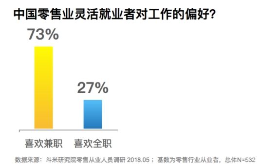 近日,由國內(nèi)最大的靈活用工服務(wù)平臺斗米旗下的斗米研究院發(fā)布的《中國零售業(yè)靈活用工報告》顯示,超七成的零售業(yè)靈活就業(yè)人員選擇兼職。隨著勞動力人口呈現(xiàn)的結(jié)構(gòu)性短缺,一方面勞動力市場對零售業(yè)人才的需求量很大,另一方面就業(yè)人員也呈現(xiàn)年輕化、靈活性的特點。零售企業(yè)特別是實體零售企業(yè)要如何破解用工難題,降低成本?零售業(yè)就業(yè)者的現(xiàn)實工作狀態(tài)和真實想法是怎么樣的?通過這份報告,結(jié)合走訪的素材,筆者帶你了解一下。