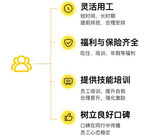 從“工資待遇”到“身份認(rèn)同”,從“基本生存”到“情感體檢”,隨著新生代勞動者訴求的改變,企業(yè)應(yīng)順應(yīng)打工者的新訴求,把落腳點放在“服務(wù)”上,與其費力招人不如悉心留人。斗米研究院指出,除了增加待遇之外,根據(jù)營業(yè)時間,對員工進(jìn)行靈活排班,例如以做二休二的方式,降低員工的工作強(qiáng)度,同時給予員工自由靈活的時間,是提升員工留存率、解決當(dāng)下用工荒最直接的辦法。
