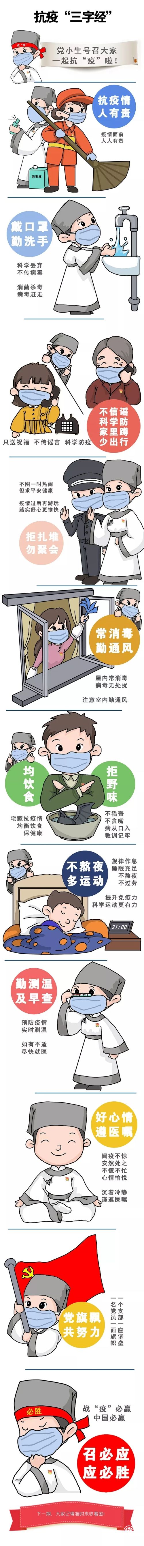 “抗疫情,人有責(zé);戴口罩,勤洗手;不信謠,科學(xué)防;家里蹲,少出行……”青衣灰帽、頗具書生氣質(zhì)的“黨小生”正從養(yǎng)成良好個(gè)人習(xí)慣、自覺(jué)維護(hù)健康安全環(huán)境等多個(gè)方面向轄區(qū)居民普及科學(xué)防疫知識(shí)。朗朗上口的三字經(jīng)搭配簡(jiǎn)潔生動(dòng)的漫畫場(chǎng)景,這是北京市海淀區(qū)海淀鎮(zhèn)利用已有黨建形象“黨小生”制作推出的新冠肺炎防控宣傳作品。