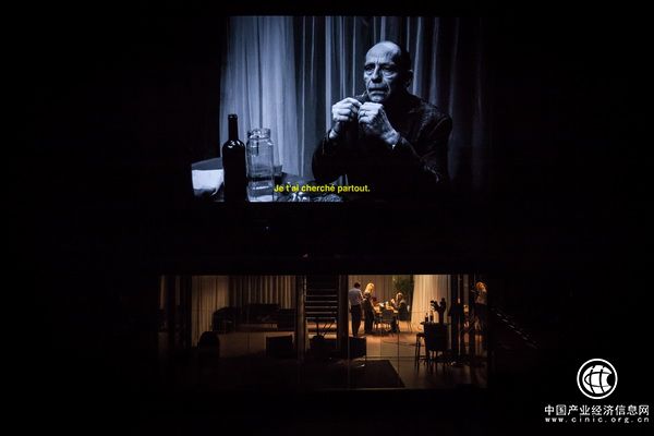 二是這個導(dǎo)演非常有媒介自覺,舞臺上很多大屏幕,還有一些現(xiàn)場拍攝的畫面,我可以稱之為直播。這些畫面和演員的現(xiàn)場表演同時存在,但似乎比重更大,很多場景就像在看電影。再有舞臺上使用了很多封閉空間,比如玻璃鏡框、比如有紗幕的表演區(qū),這么做看上去是強(qiáng)化了第四堵墻。也因此,12個小時的觀看經(jīng)驗(yàn),我并沒有受到非常大的震撼,我是說,那種舞臺劇形式帶給我的震撼。我會想,這部劇在什么方面,是劇場意義上的思考。