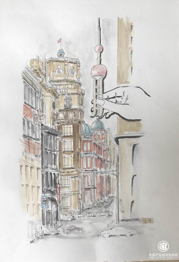 它總是一只從畫外深入畫內(nèi)的手,因此,從插畫內(nèi)的角度看,它是一只來自虛空的手,一只對(duì)畫內(nèi)人來說看不見的手。在一般的宗教畫中,毫無疑問,這是來自上帝的手。在金宇澄的文學(xué)插畫中,這也是來自上帝的手嗎?“上帝不響。”(《繁花》)在宗教畫中,上帝的手(如在米開朗琪羅的壁畫《創(chuàng)造亞當(dāng)》里),總是巨大,強(qiáng)勁,有力。金宇澄畫的這只手,永遠(yuǎn)只是線條,沒有色塊,雖然巨大,但蒼白,纖細(xì)。這只手,有時(shí)指向建筑,有時(shí)指向書,懸置在那里,似乎總是同時(shí)在顯示兩個(gè)相反的含義:建造與拆除,打開與關(guān)閉。