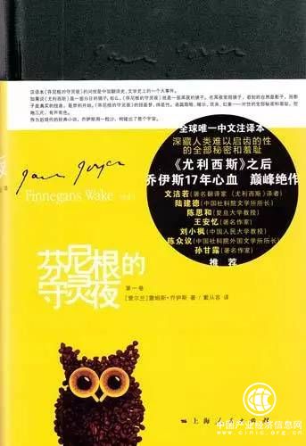 《芬尼根的守靈夜》又譯《芬尼根的覺醒》(《Finnegans Wake》)。喬伊斯更將他的意識流技巧和夢境式的風(fēng)格發(fā)揮到了極致。這部小說徹底背離了傳統(tǒng)的小說情節(jié)和人物構(gòu)造的方式,語言也具有明顯的含混和曖昧的風(fēng)格。喬伊斯在書中編造了大量的詞語,潛藏了許多歷史和文化的背景以及哲學(xué)的意蘊,甚至大量運用雙關(guān)語。
