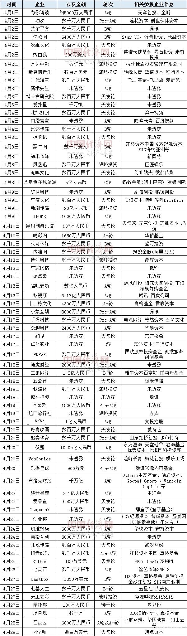 據(jù)記者初步統(tǒng)計(jì),4月份發(fā)生在文化和旅游領(lǐng)域的融資超過70起。在融資金額方面,萬達(dá)電影、新潮傳媒等企業(yè)領(lǐng)先;在行業(yè)融資數(shù)量方面,短視頻、動(dòng)漫等行業(yè)備受資本青睞。