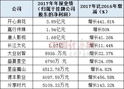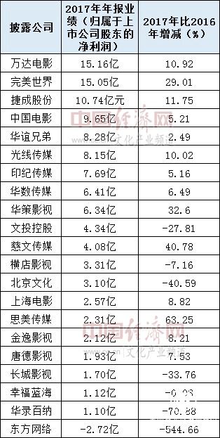 2.影視類企業(yè)2017年年報(bào)業(yè)績亮眼