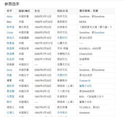 《創(chuàng)造101》參賽選手是從全國457家公司和院校選出來的