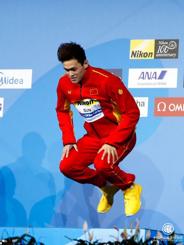孫楊跳上領(lǐng)獎(jiǎng)臺(tái)。