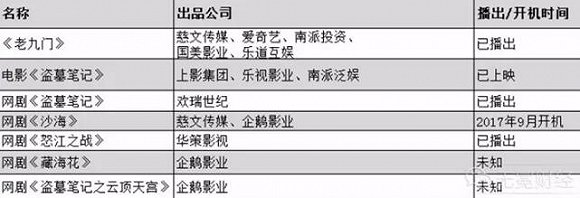 南派三叔部分IP影視劇開(kāi)發(fā)概況
