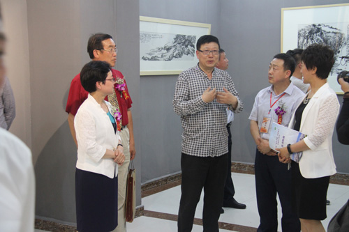 穆家善教授向?qū)O礦玲副市長等分享中國畫創(chuàng)作感想。