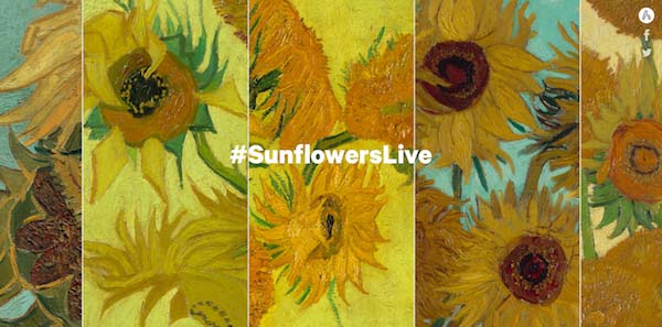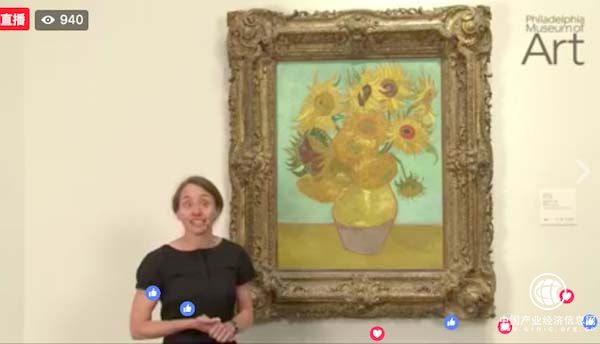 這是Facebook的“向日葵直播”項(xiàng)目,在1個多小時時間里,全球5大博物館輪番出鏡,各自利用15分鐘時間,向網(wǎng)友講解館藏的凡·高作品《向日葵》。